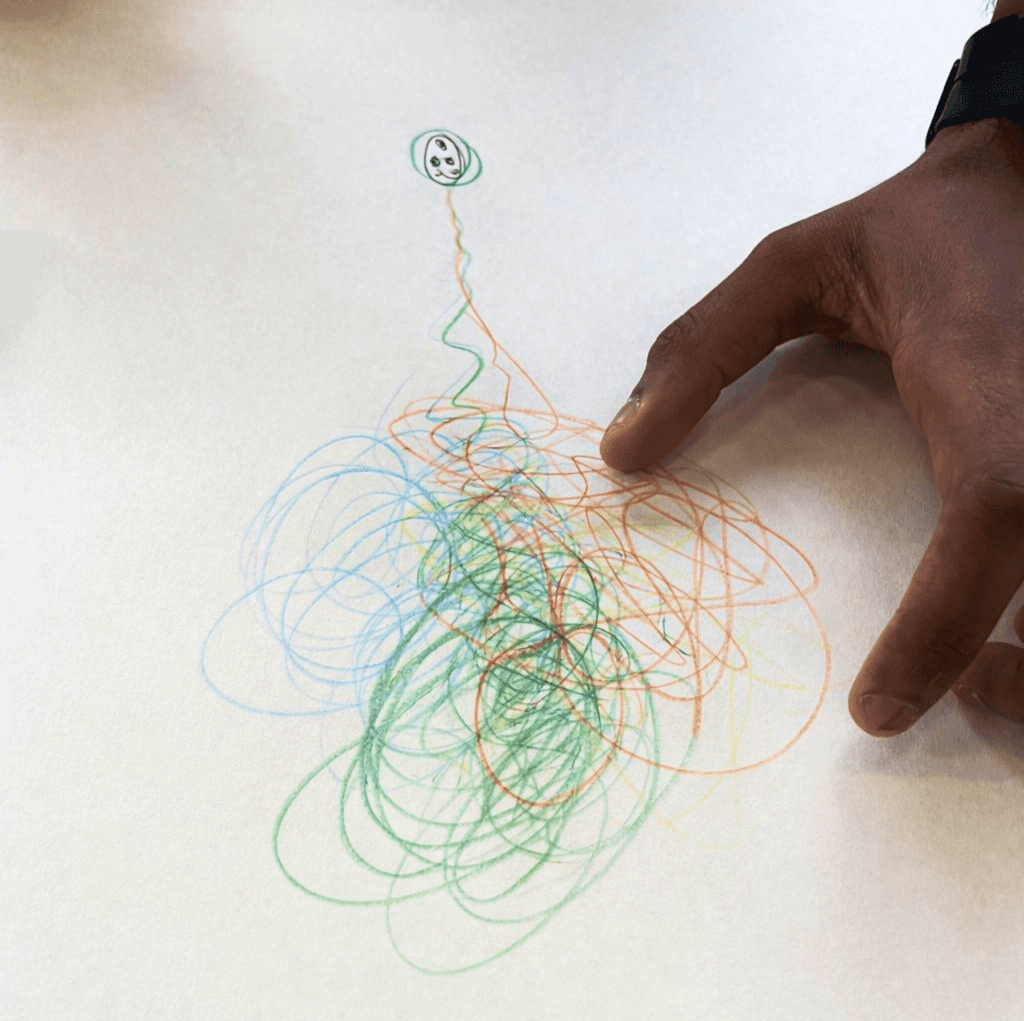 Image of the group working on a large sheet of paper.