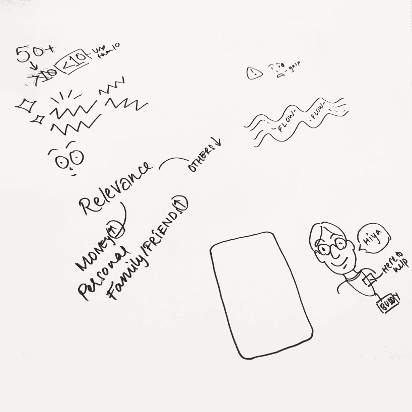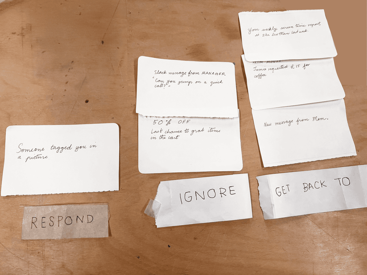 By focusing our project on notifications, we used creative toolkit to understand the ways people use their phones and how they envisioned their notifications. Some examples are shown: