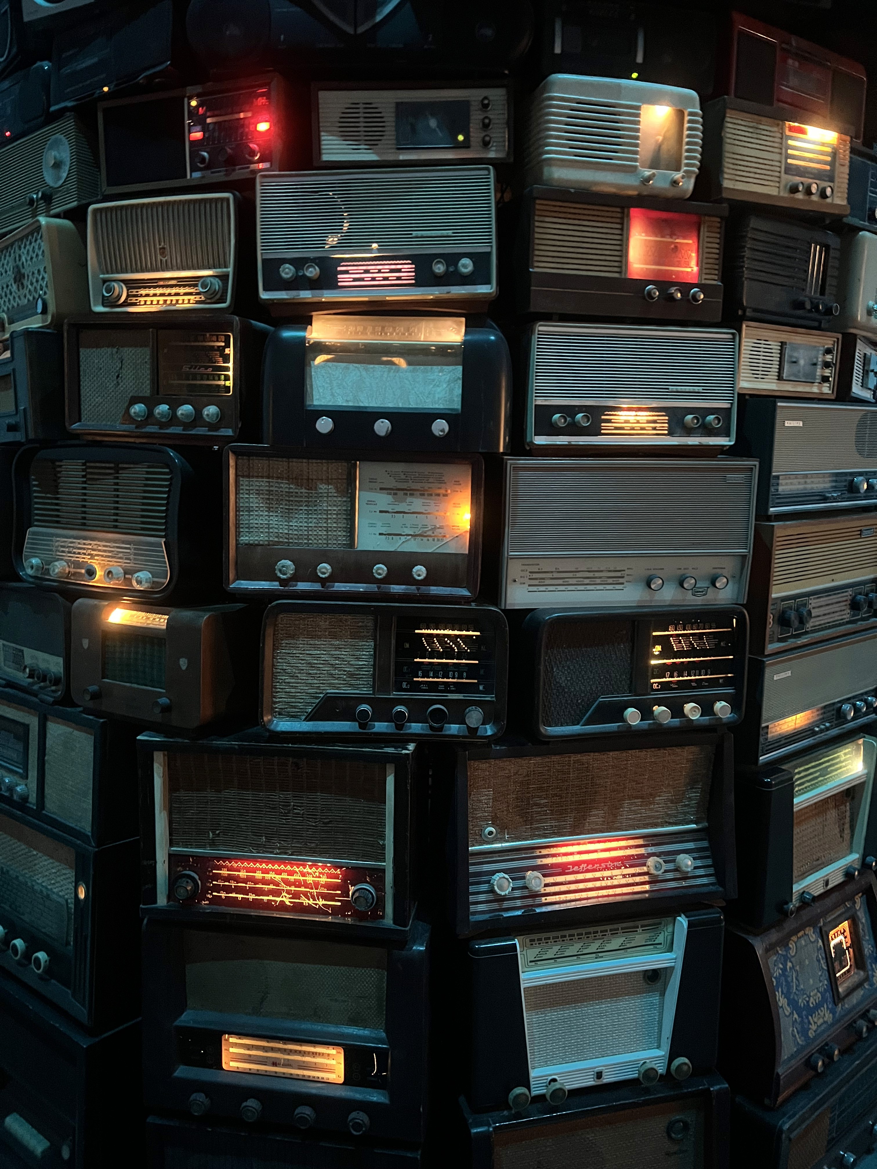 Close-up of stacked radios. Getting close provided a clear sound which could not be captured on our devices.
